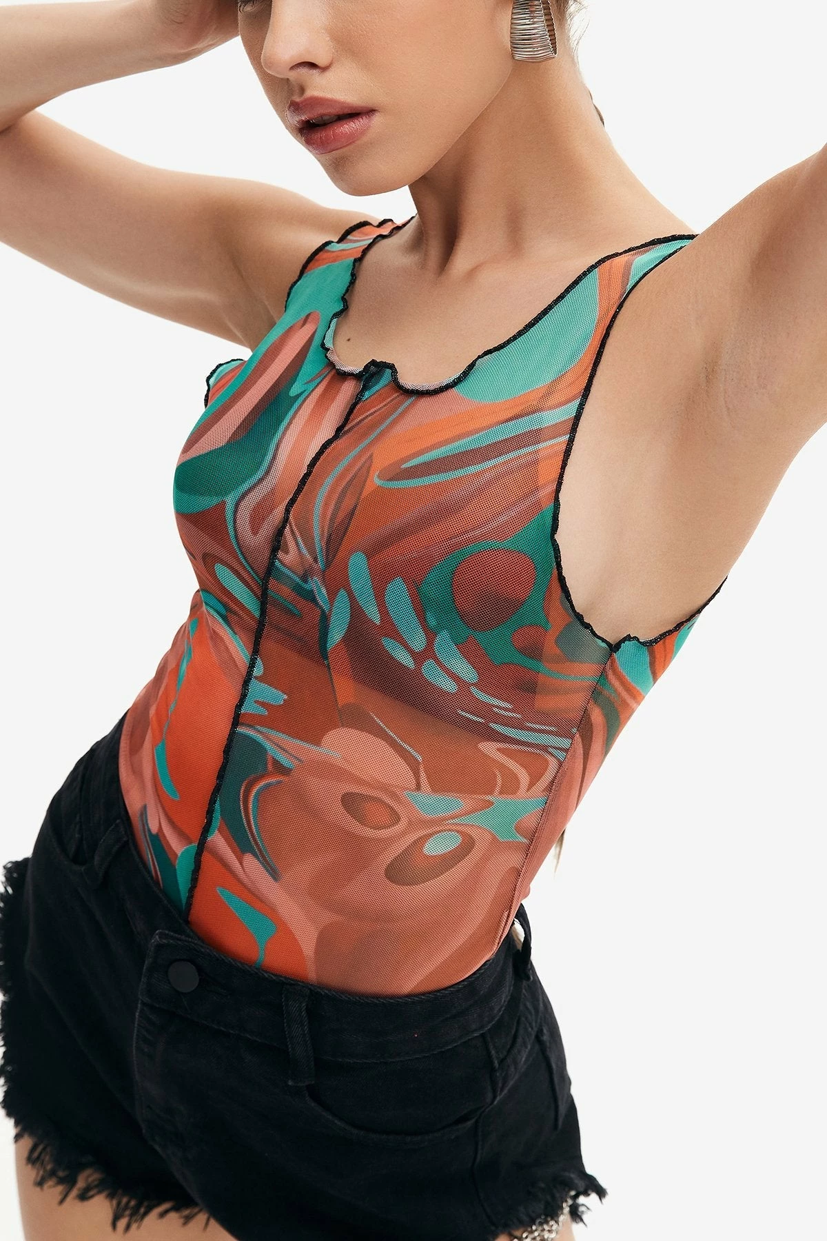 Be the first to review “Solado Colorblock Swirl Print Mesh Bodysuit” Cancel reply