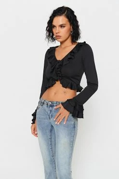 Be the first to review “Solado Crop Ribbed Zipper Front Long Sleeve Blouse” Cancel reply