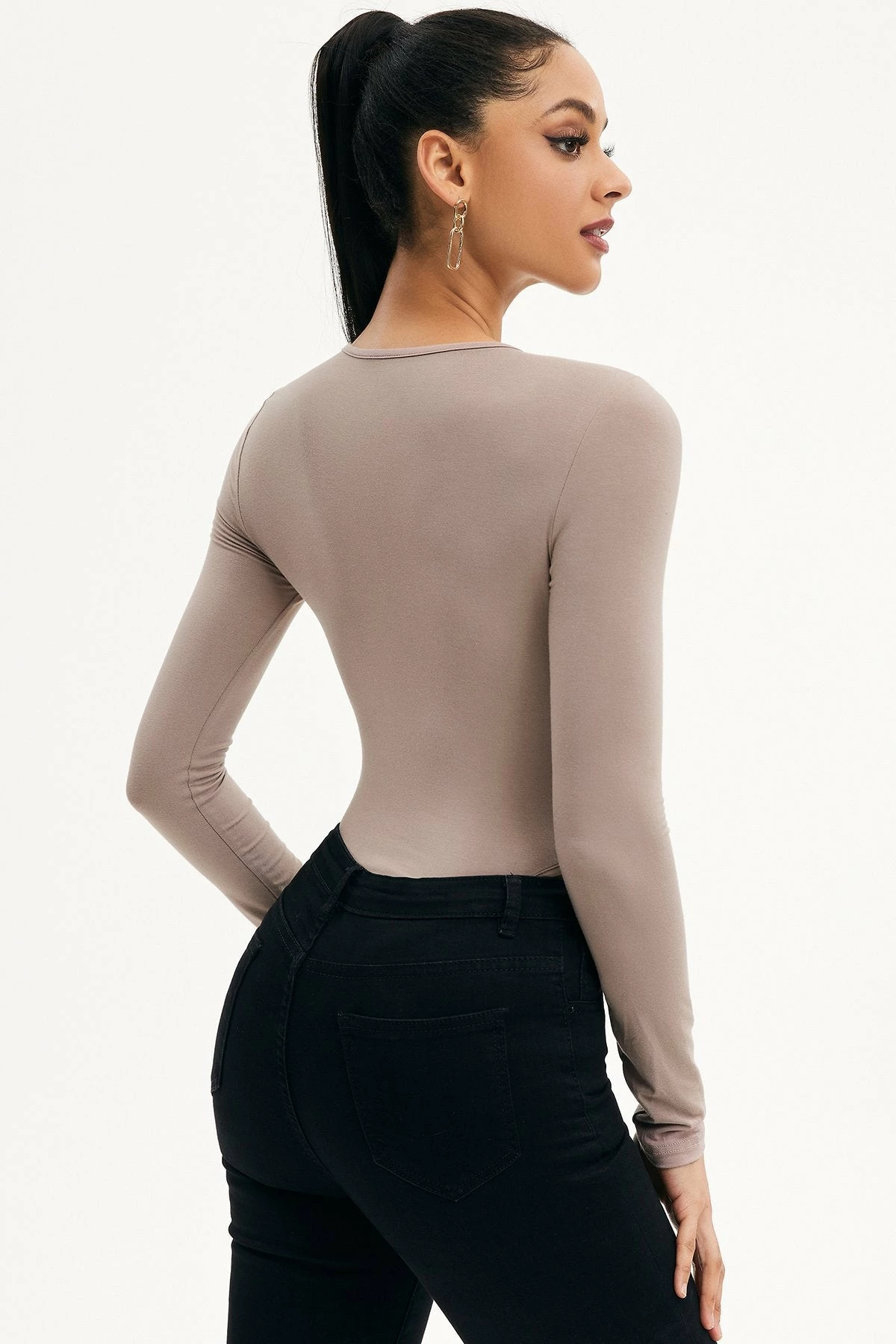 Style:SexyColor:Tan/BlackSeason:Spring/Summer/AutumnNeckline:Round NeckSleeve Length: Long SleeveHem Shaped:SlimComposition:90% Polyester, 10% Spandex