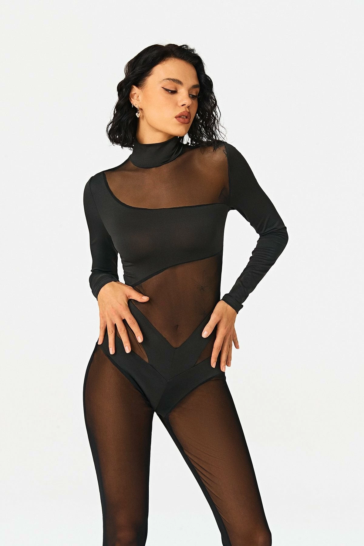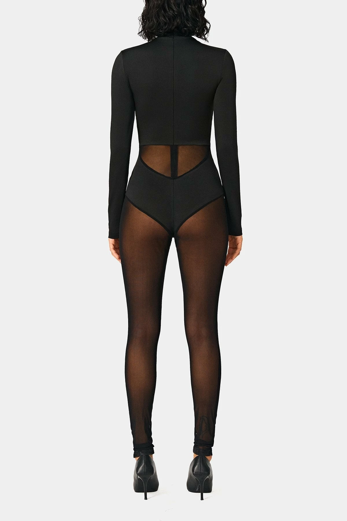 Style:SexyColor:BlackNeckline:High NeckSleeve Length:Long SleeveHem Shaped:SlimComposition:95% Polyester, 5% Spandex