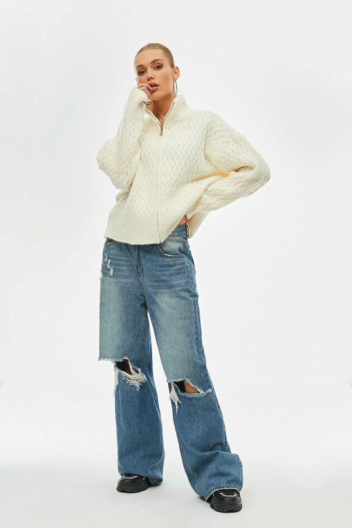 Be the first to review “Solado High Neck Zipper Front Cable Knit Long Sleeve Sweater” Cancel reply