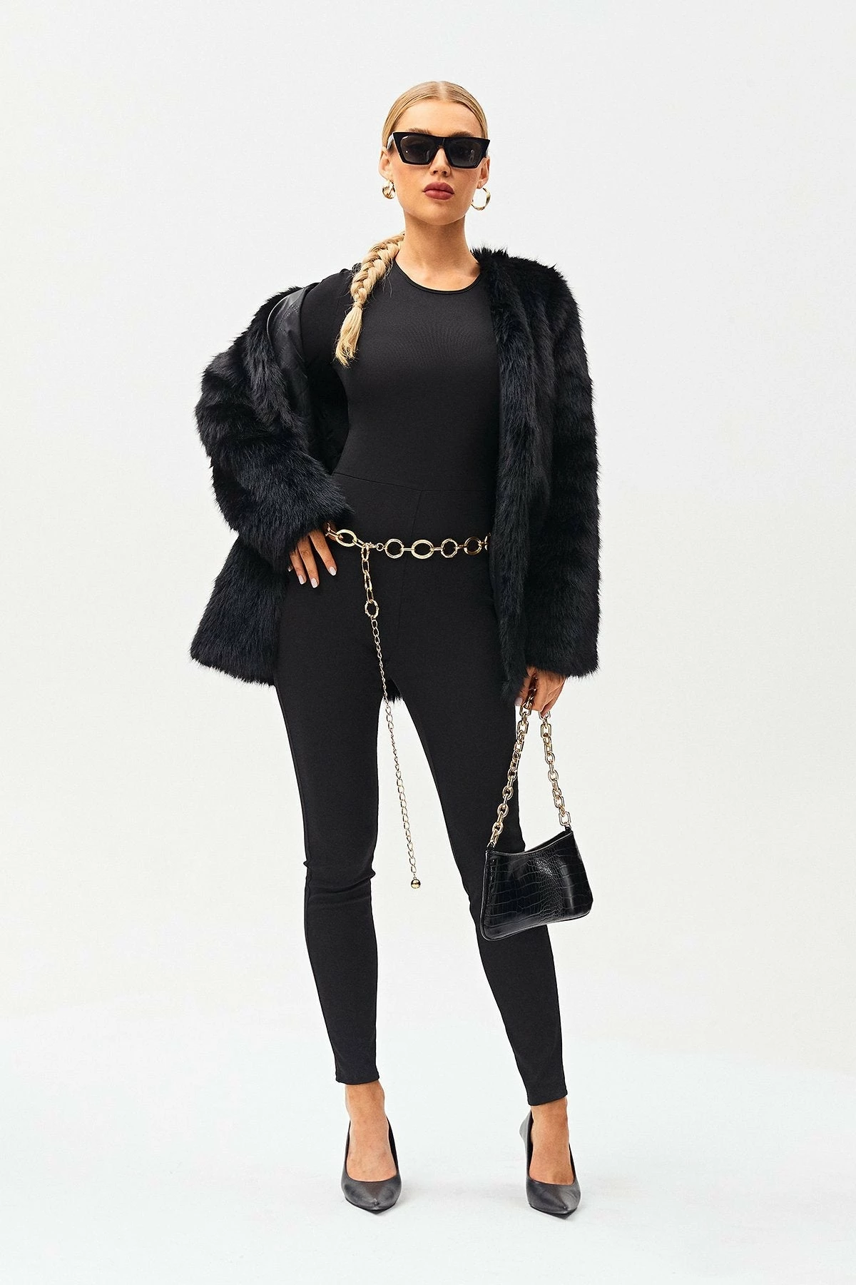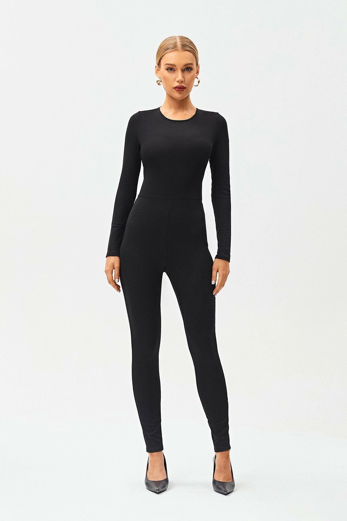 Style:ChicColor:BlackNeckline:Round NeckSleeve Length:Long SleeveHem Shaped:SlimComposition:100% Polyester