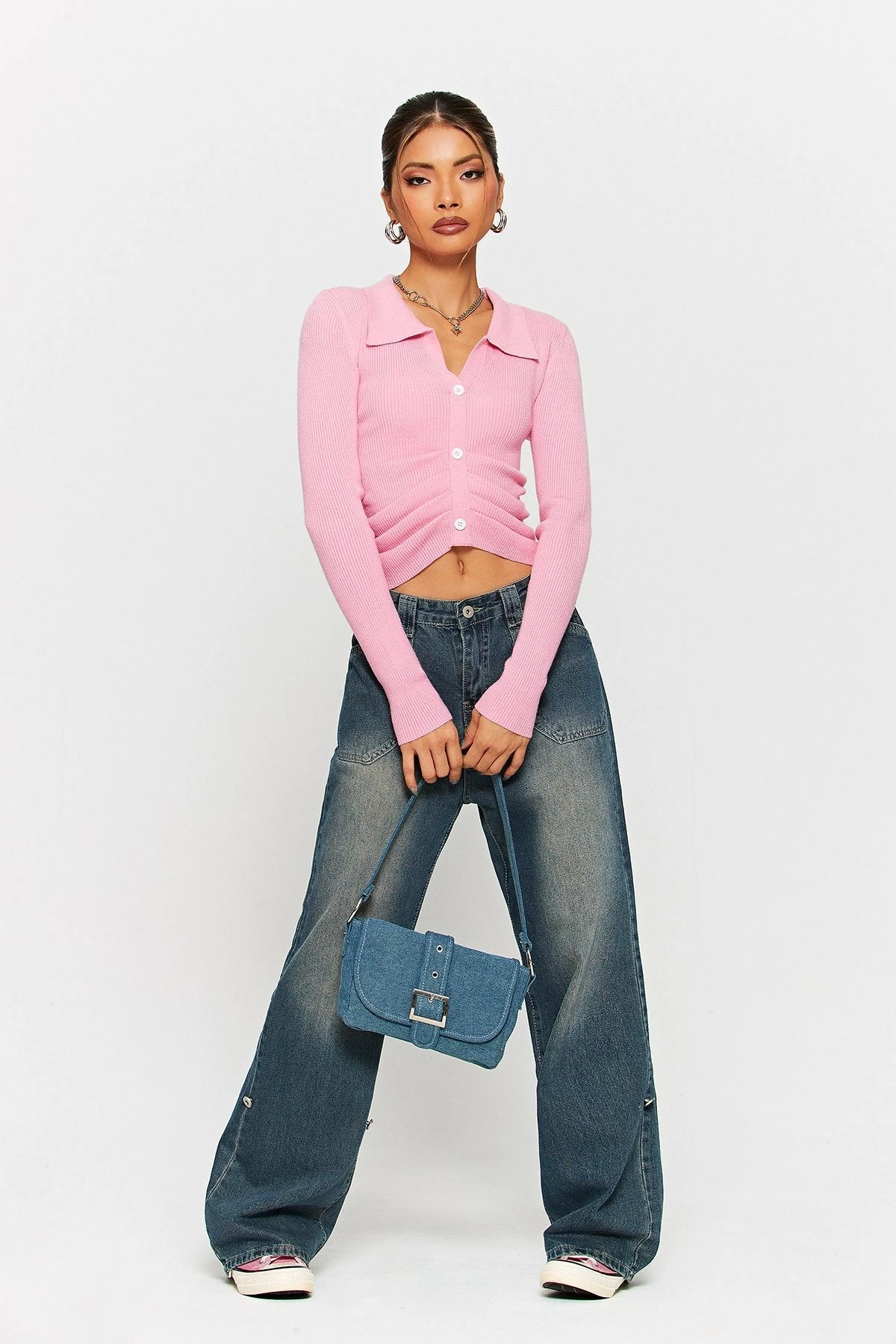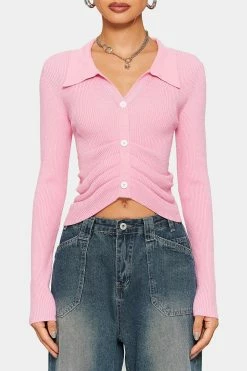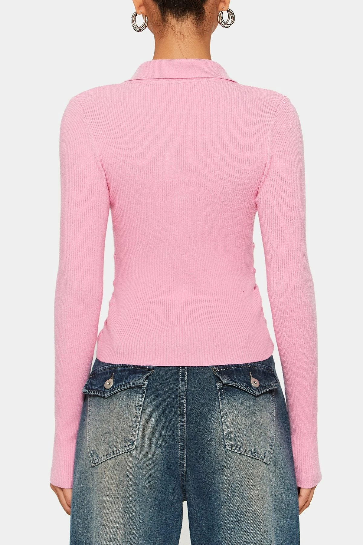 Be the first to review “SOLADO Lapel Neck Button Front Ruched Ribbed Knit Sweater” Cancel reply