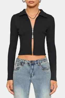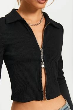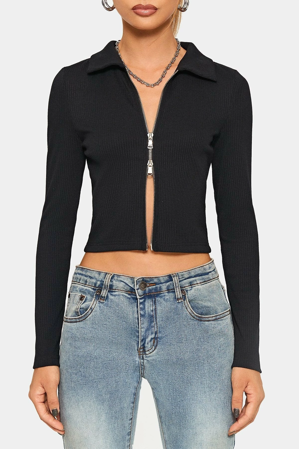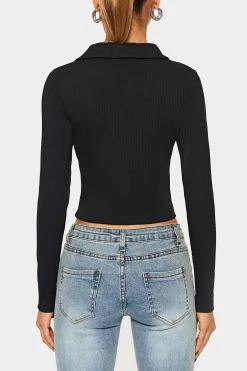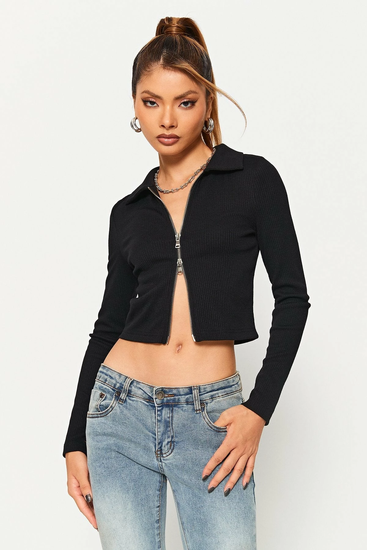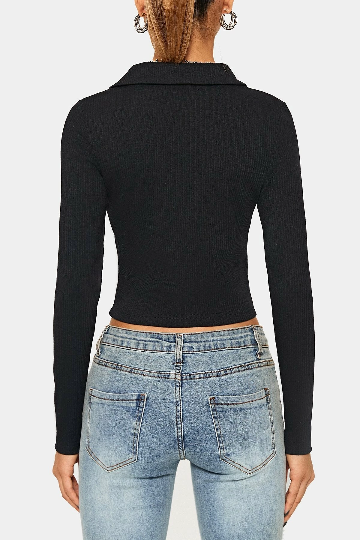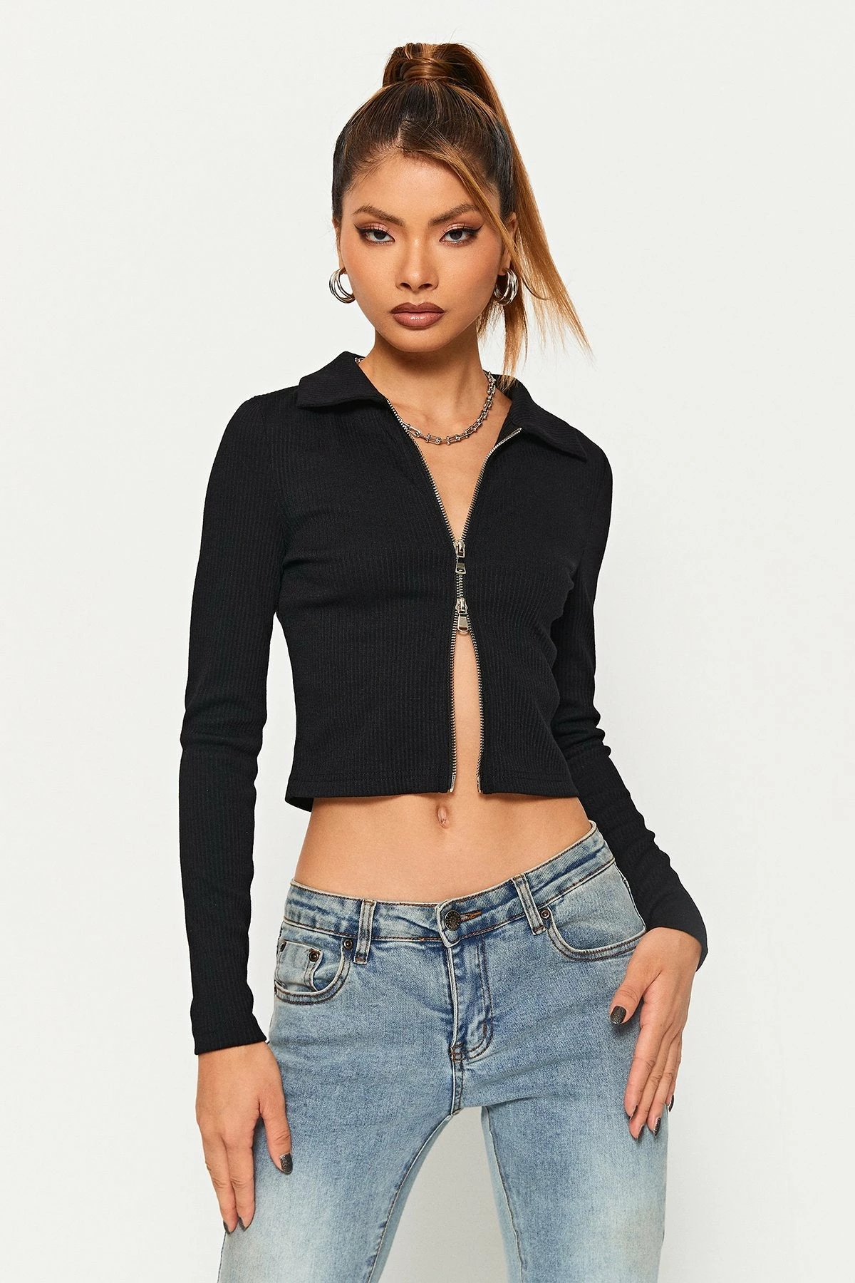 Be the first to review “SOLADO Lapel Neck Zipper Front Ribbed Long Sleeve Top” Cancel reply