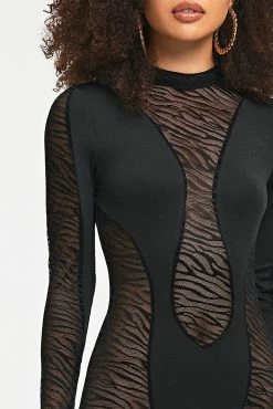 Style: Sexy Color: Black Neckline: Mock Neck Sleeve Length: Long Sleeve Hem Shaped: Slim Composition: 95% Polyester, 5% Spandex /td>