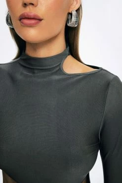 Style:SexyColor:GreySeason:Spring/Summer/AutumnNeckline:Mock NeckSleeve Length:Long SleeveHem Shaped:SlimComposition:95% Polyester, 5% Spandex