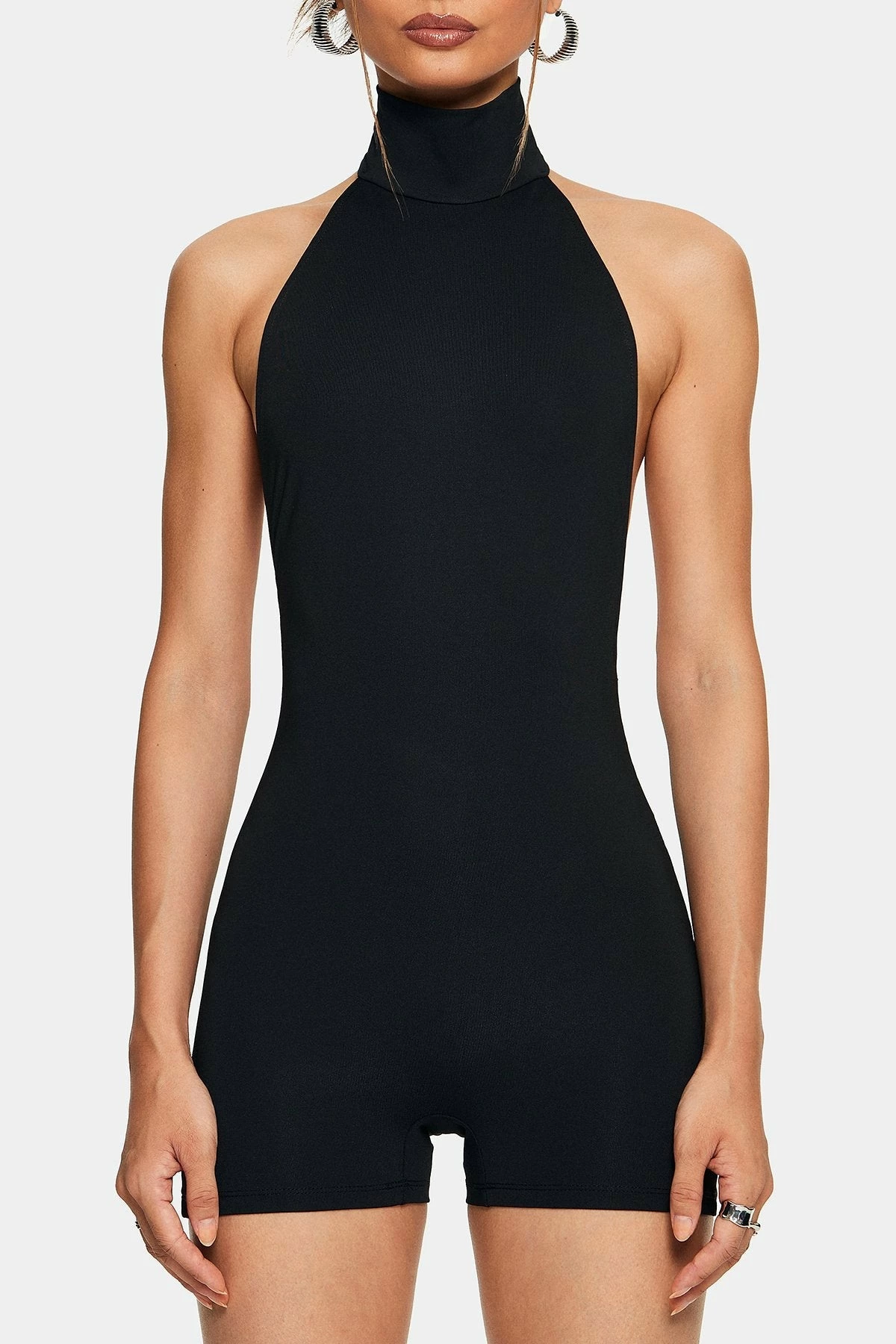 Be the first to review “SOLADO Mock Neck Open Back Solid Romper Playsuit Without Waist Chain” Cancel reply