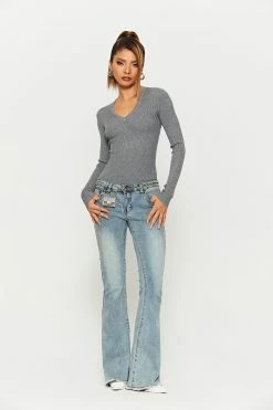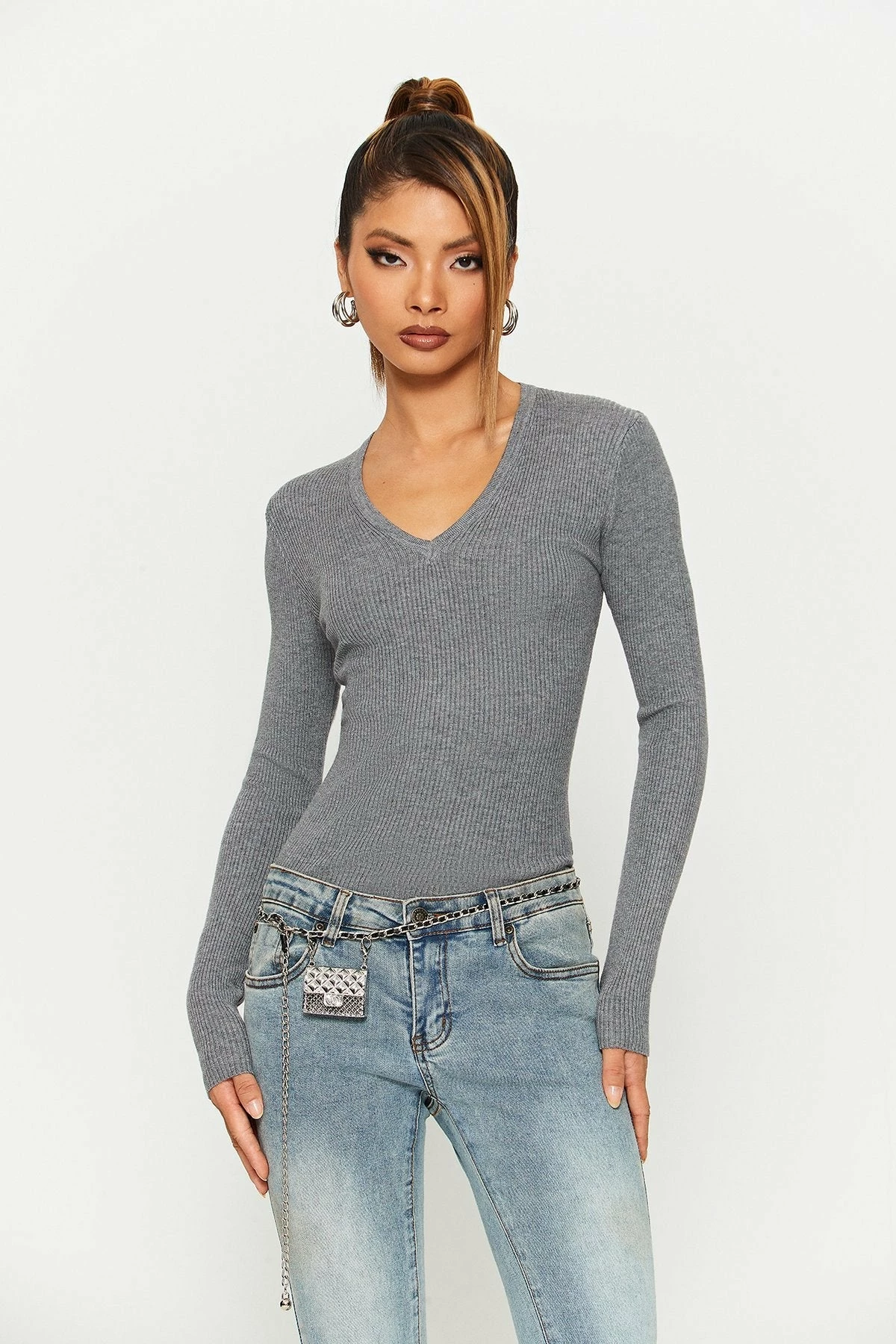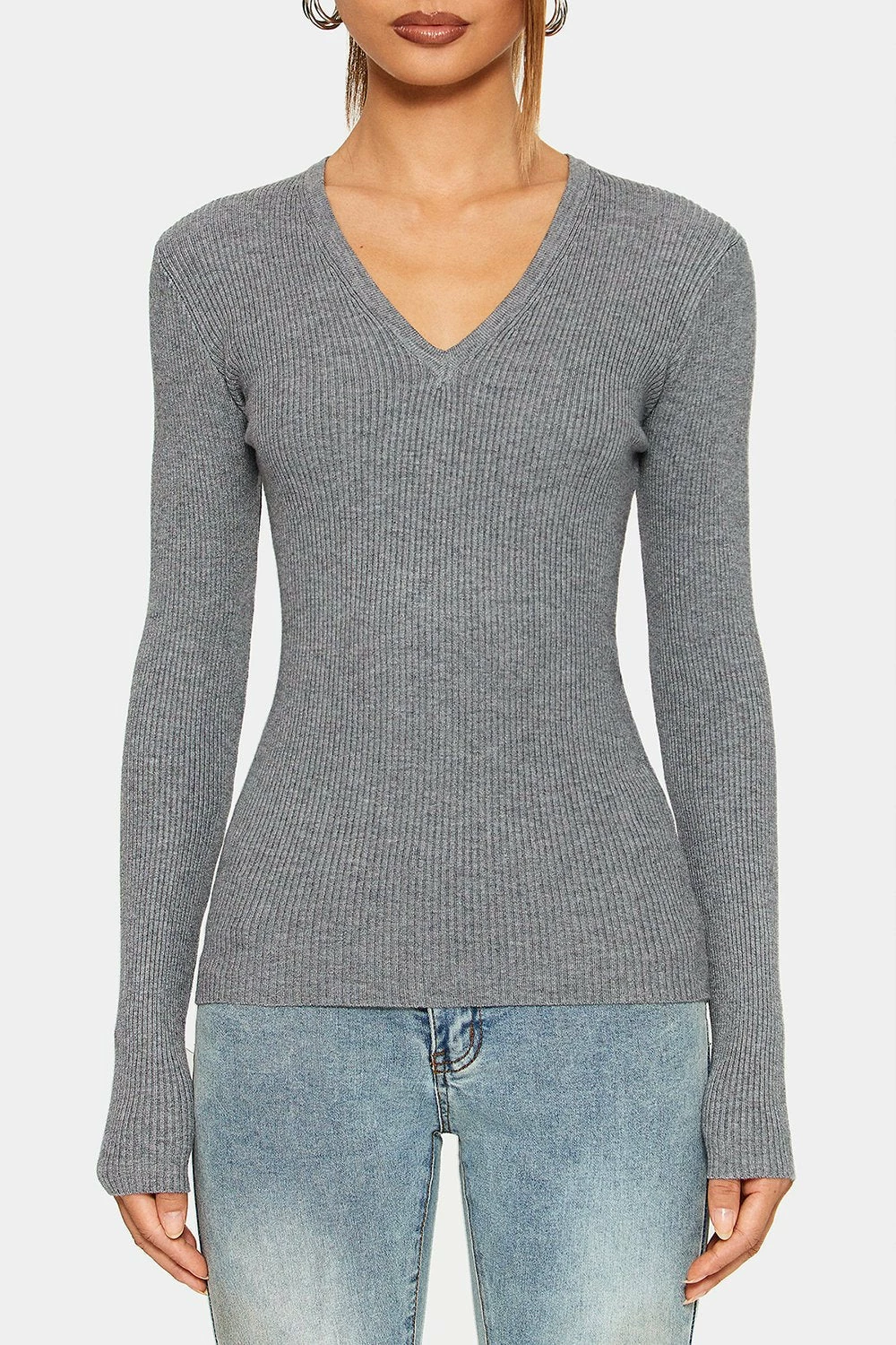 Style:CasualColor:Gray/BeigeNeckline:V NeckSleeve Length:Long SleeveHem Shaped:SlimComposition:100% Acrylic