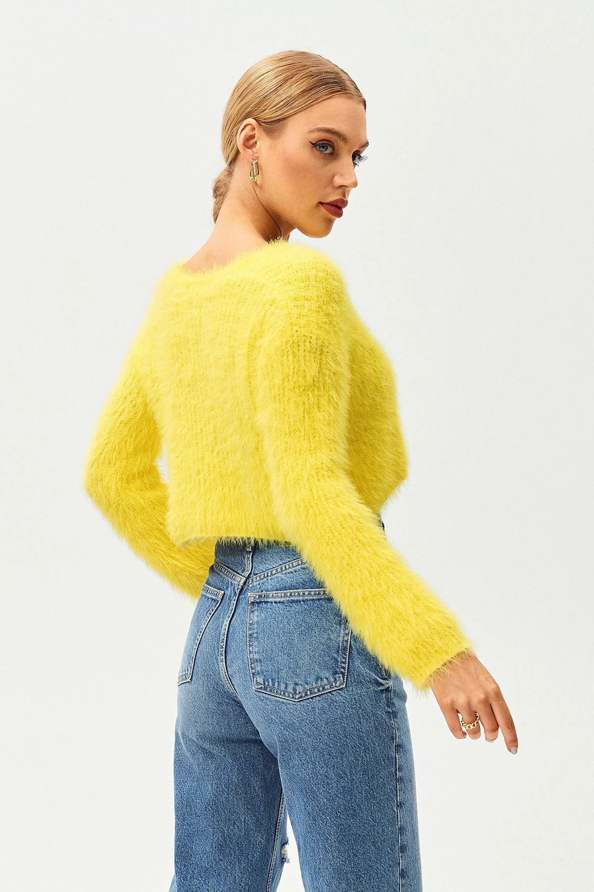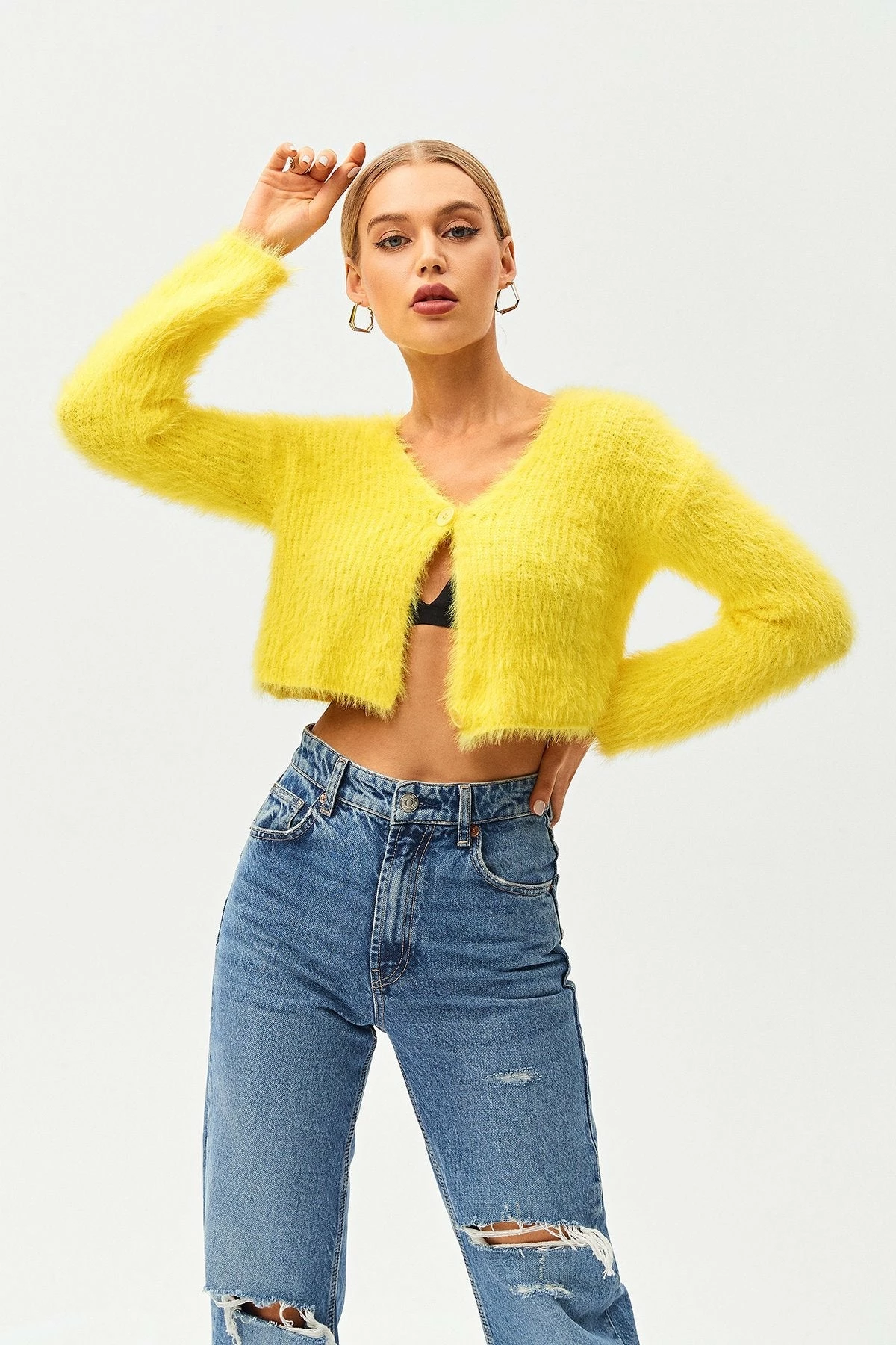 Style:RomanticColor:YellowNeckline:V NeckSleeve Length:Long SleeveHem Shaped:SlimComposition:100% Acrylic