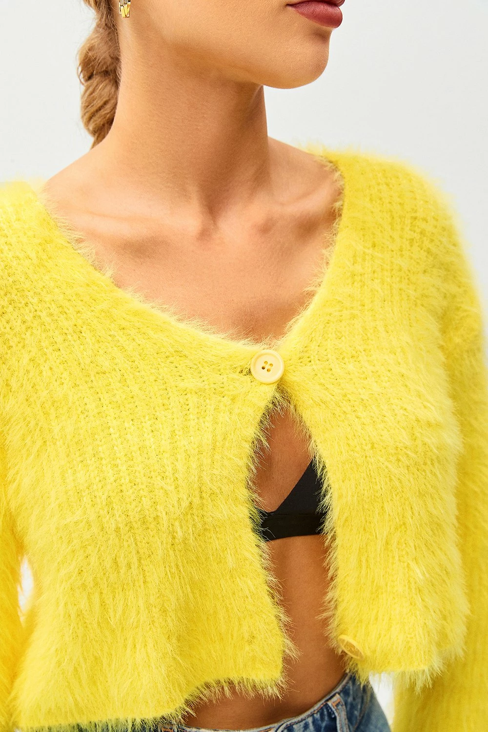 Be the first to review “Solado Single Buttoned Split Hem Fluffy Long Sleeve Cardigan” Cancel reply