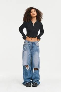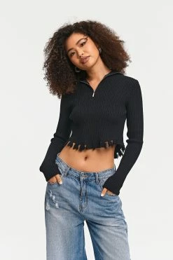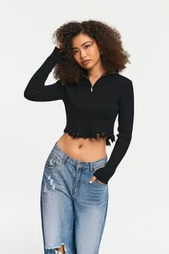 Be the first to review “Solado Zipper Front Asymmetrical Hem Ribbed Knit Sweater” Cancel reply